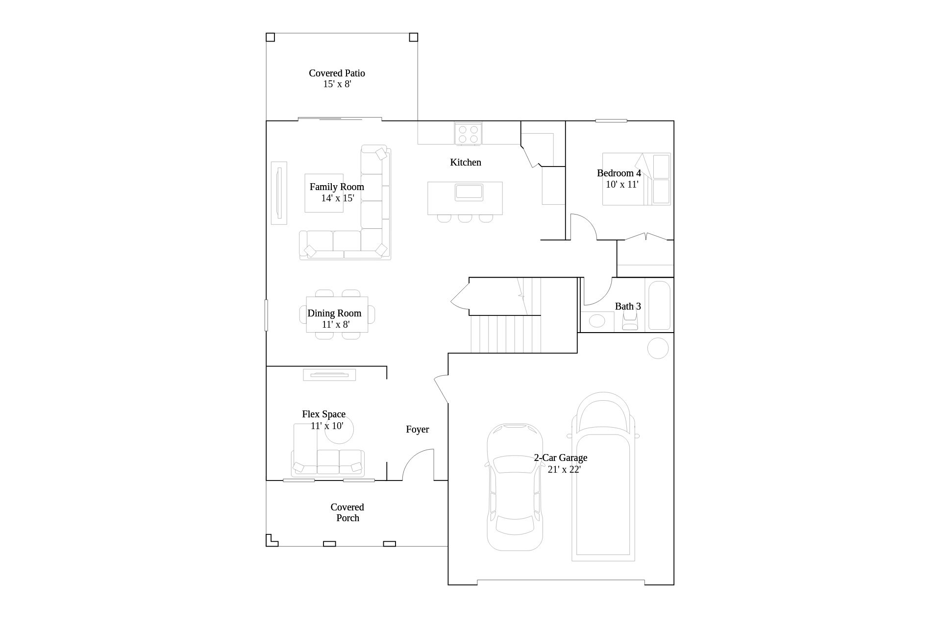 • Description: Upon entry into this new two-story home is a flex space ideal for entertaining guests, followed by the spacious open-concept living area with a covered patio to promote indoor-outdoor activities. A first-floor bedroom is well-suited for versatile uses and the remaining three bedrooms occupy the second floor, including the tranquil owner’s suite with a private bathroom. A two-car garage completes the home.