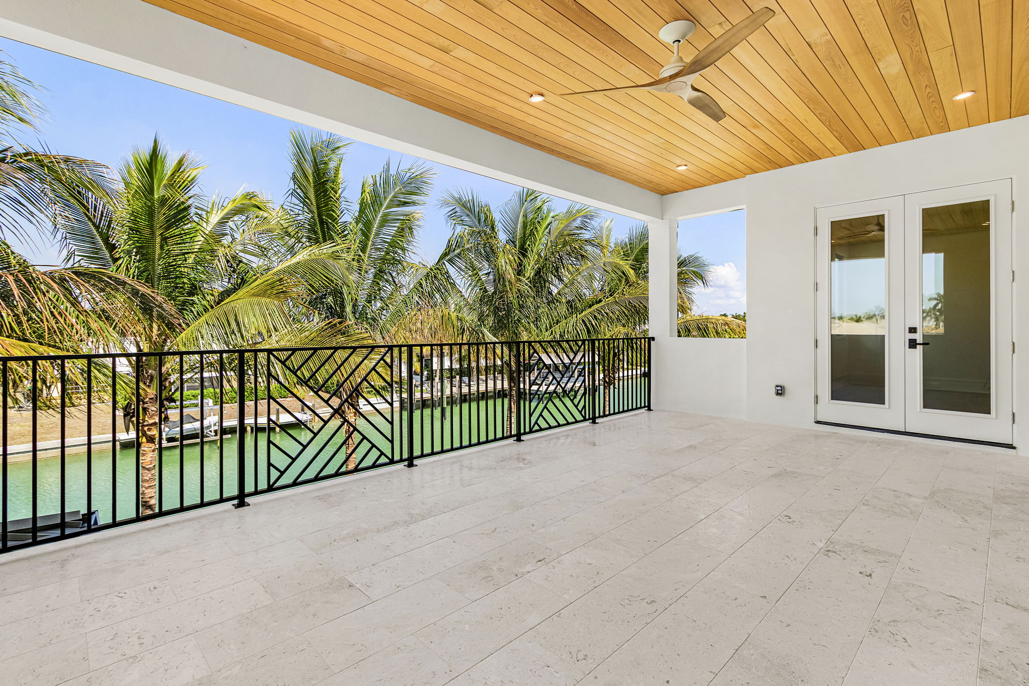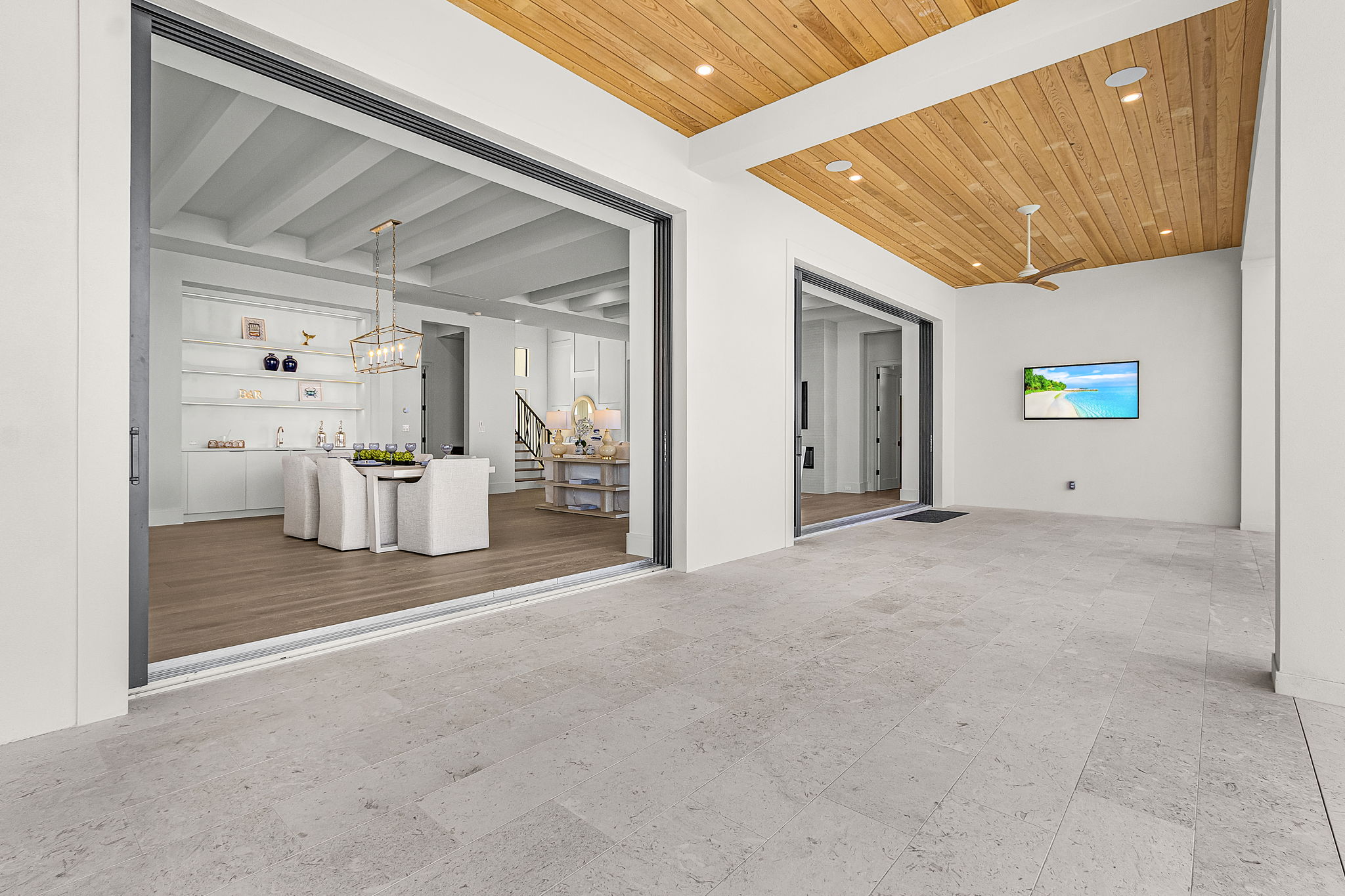 Expansive ten-foot impact-rated sliding doors lead to a